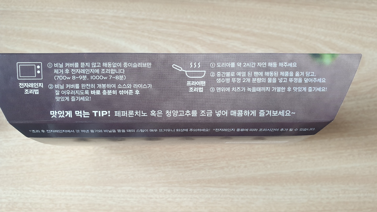 이건 비닐커버를 뜯지 않은 채 약8분동안 전자레인지에 돌리면 된다.