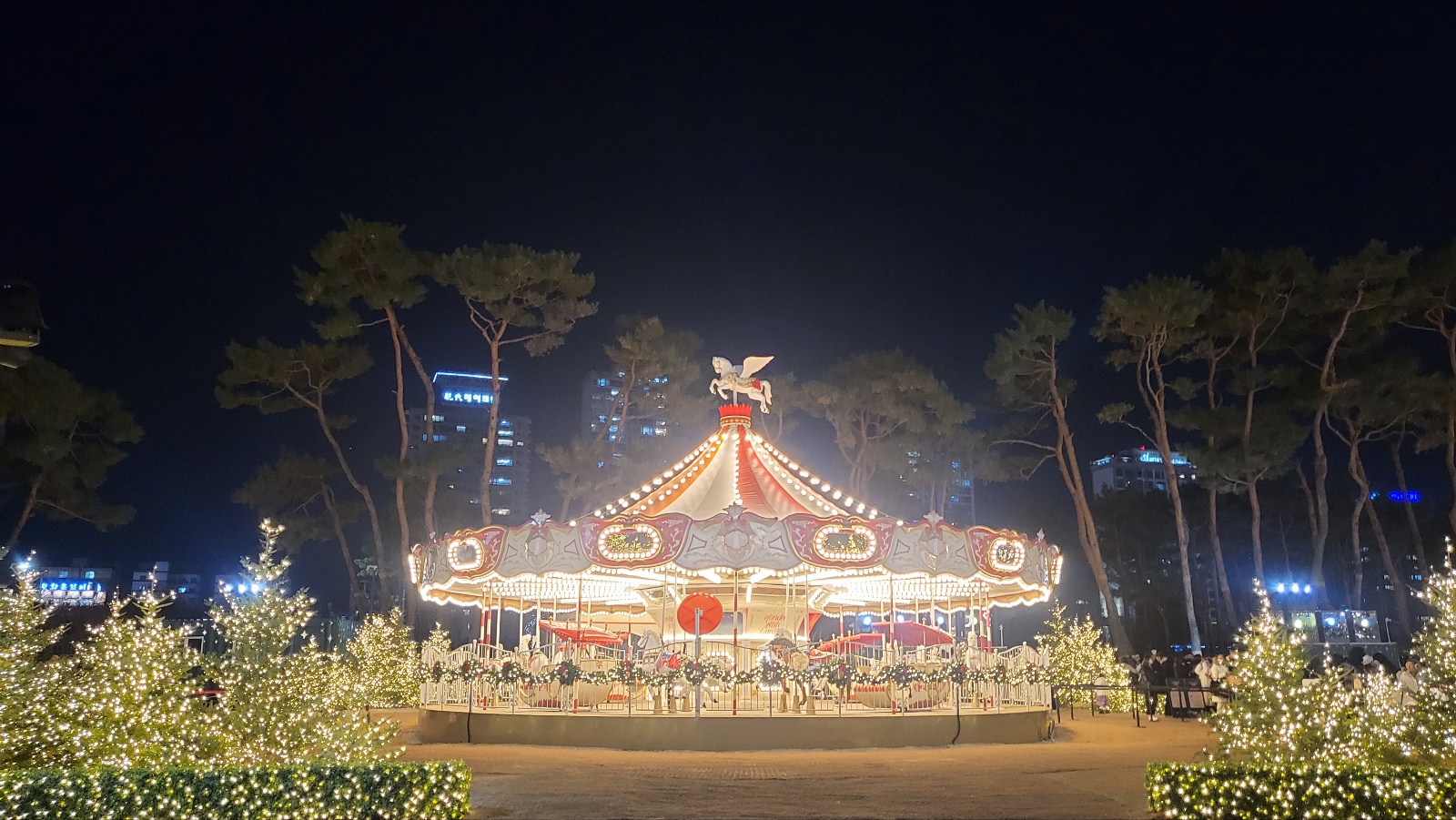그 뒤에 회전목마가 보였는데, 그 풍경이 장관이었다.